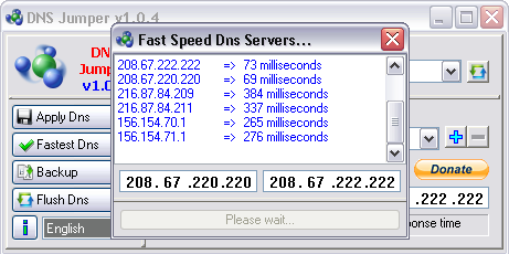 DNS Jumper is a small application that aids the user by providing a one-click system to change DNS servers. The application displays a list of DNS servers that can be activated with the click of the mouse button. Available DNS server range from Google DNS over Open DNS to Ultra DNS, Level 3, Open NIC to the default DNS server of the system.